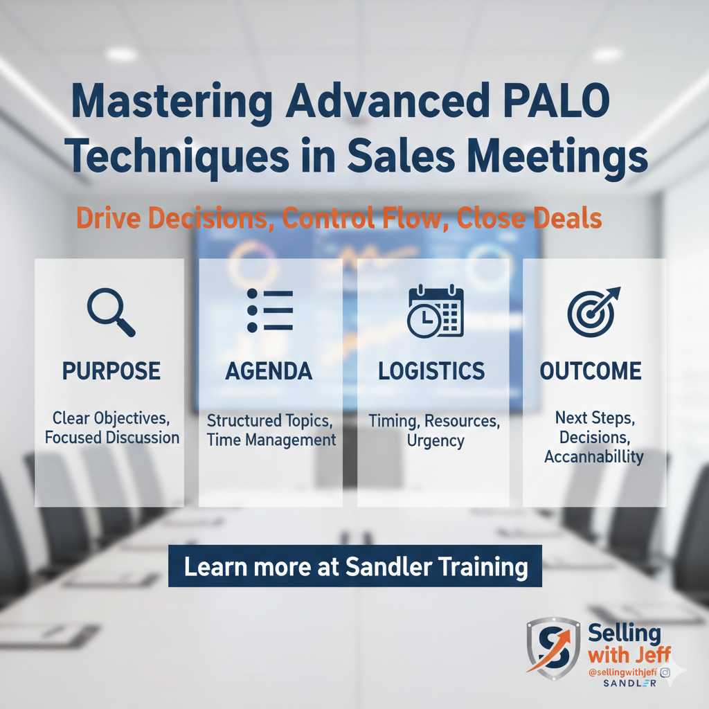 In the fast-paced world of enterprise sales, maintaining control over meetings and driving them towards productive outcomes is crucial. The advanced PALO (Purpose, Agenda, Logistics, Outcome) technique is a structured approach designed to navigate client hesitations, establish clear communication, and drive decision-making. By mastering these techniques, sales professionals can ensure that every meeting is purposeful, organized, and results-driven, ultimately leading to higher success rates.