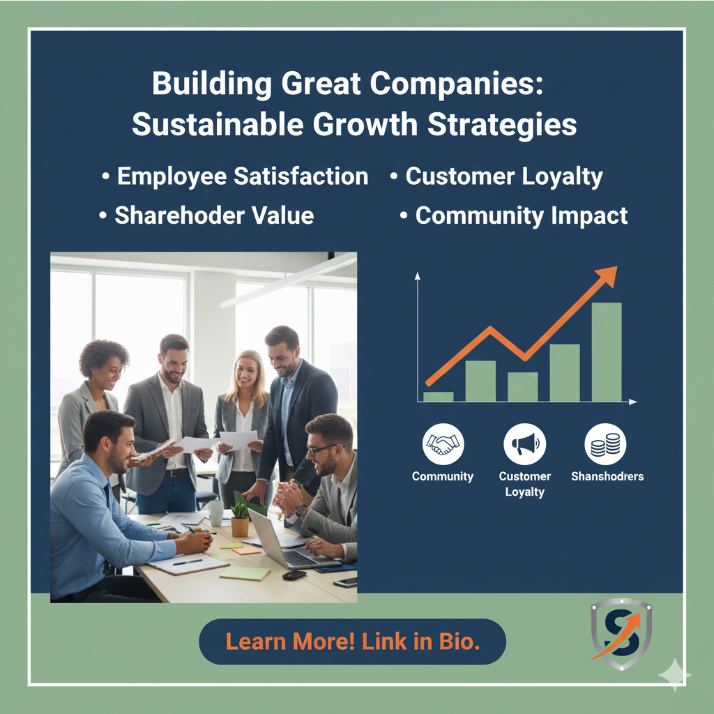 In summary, building a great company requires a holistic approach that encompasses employee satisfaction, customer loyalty, shareholder value, and community recognition. Understanding the differences between lifestyle and growth companies, transitioning from bottleneck to delegation-driven models, and implementing advanced strategies for sustainable growth are key steps in this journey. By focusing on these elements, companies can achieve long-term success and make a positive impact on the world.