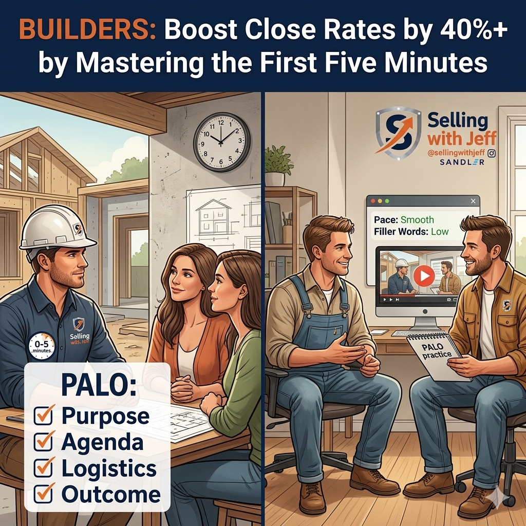In residential construction, prospects arrive with two big fears: “Will this builder blow my budget?” and “Can I trust them not to disappear or disappoint?” Your opening either confirms those fears or starts to lower them. You don’t need a slick pitch; you need a professional, confident process that makes the homeowner feel, “This person runs projects the way they run this conversation—on purpose.”