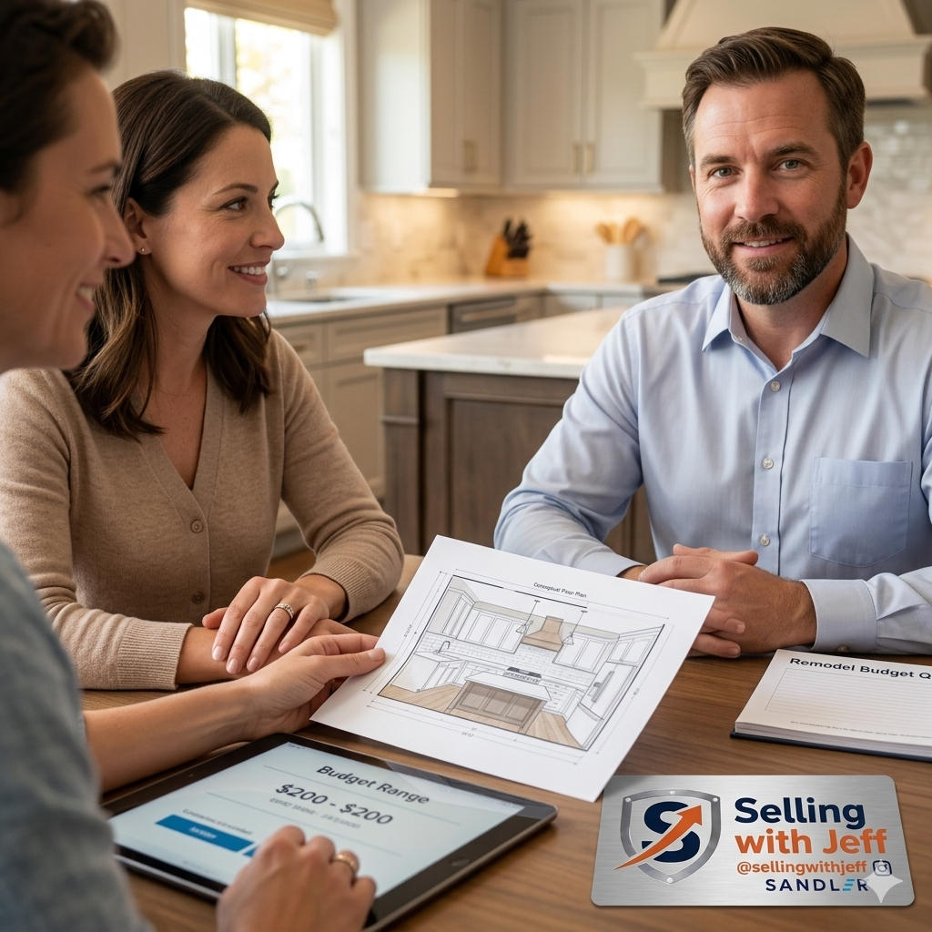 Talking numbers before pain. In the Sandler Selling System, the Budget step comes after the Pain step. You first explore why they want to remodel, what’s not working, and the personal and financial impact of doing nothing. Only then does a serious money conversation make sense. As one Sandler article notes, budget is far easier when the prospect’s pain is clear because they see value, not just cost (David Fischer).