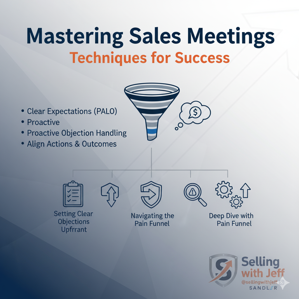 In conclusion, mastering sales meetings requires a combination of clear expectations, proactive objection handling, deep insights into client pain points, and aligned actions. By leveraging the Sandler Selling System and incorporating real-world strategies, you can enhance the effectiveness of your sales meetings and achieve better outcomes.