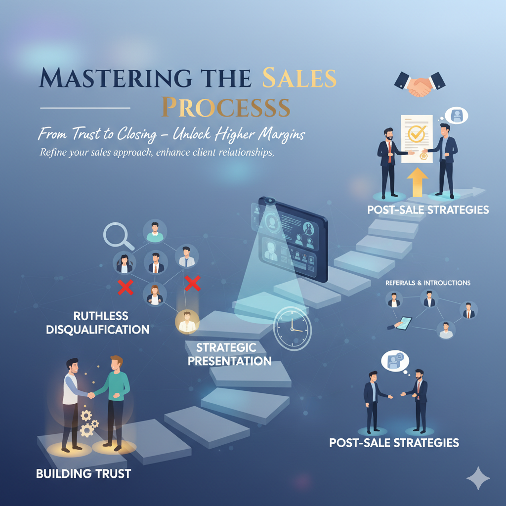 By mastering these steps—from building trust to effective post-sale strategies—you can refine your sales process, enhance client relationships, and achieve higher closing rates with better margins.