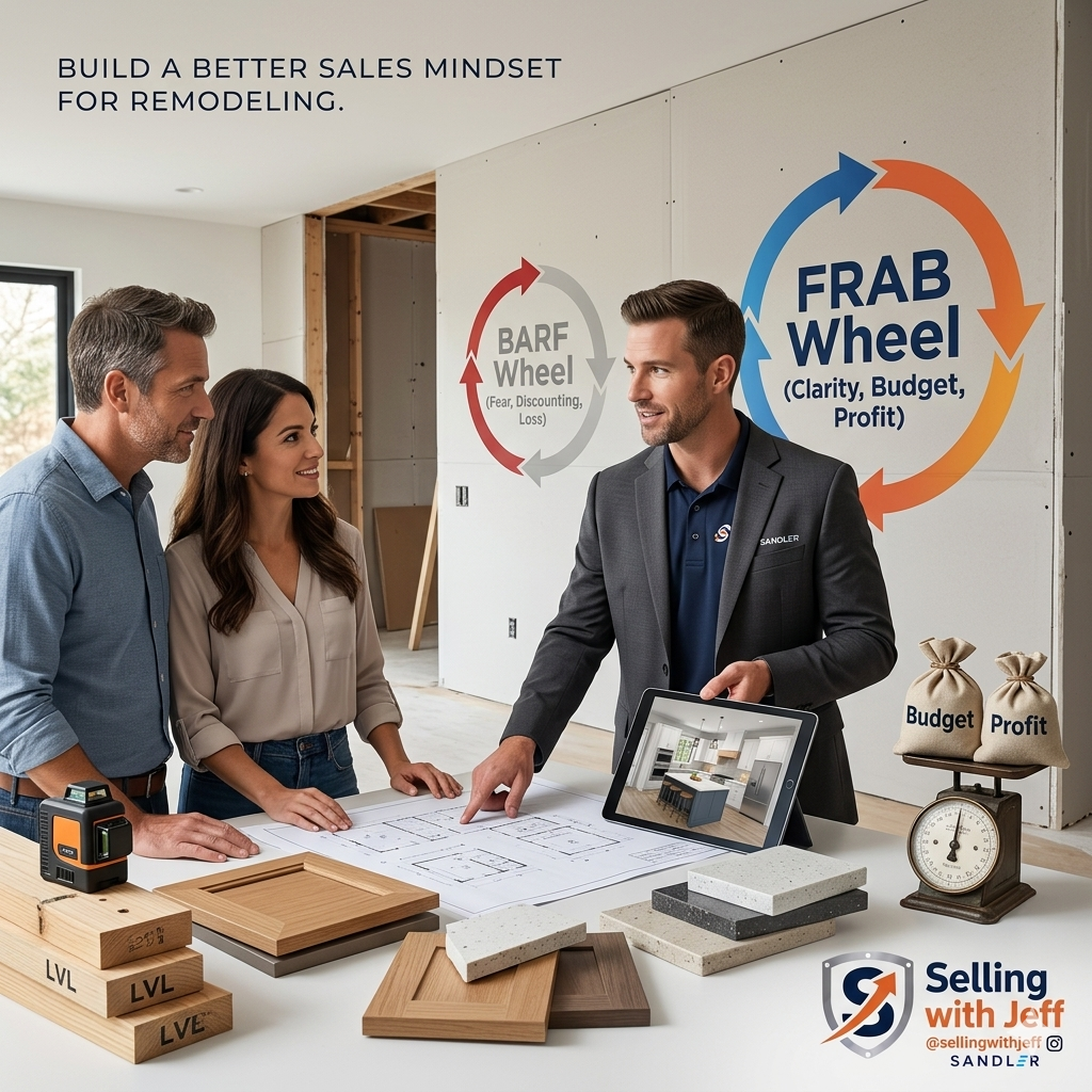 Mindset won’t hang a cabinet or frame a wall, but it will decide which projects you win, at what price, and how you feel doing it. If you get the mental model right—BARF to FRAB, BAT for success—your remodeling sales process stops feeling like pressure and starts feeling like professional guidance your clients are grateful to pay for.